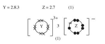 (a) write the electronic arrangement of Y and Z; (1 mark)