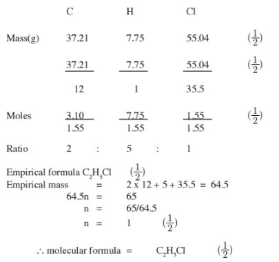 mass of the compound is 65. (C : 12.0; H : 1.0; Cl : 35.5). (3 marks)