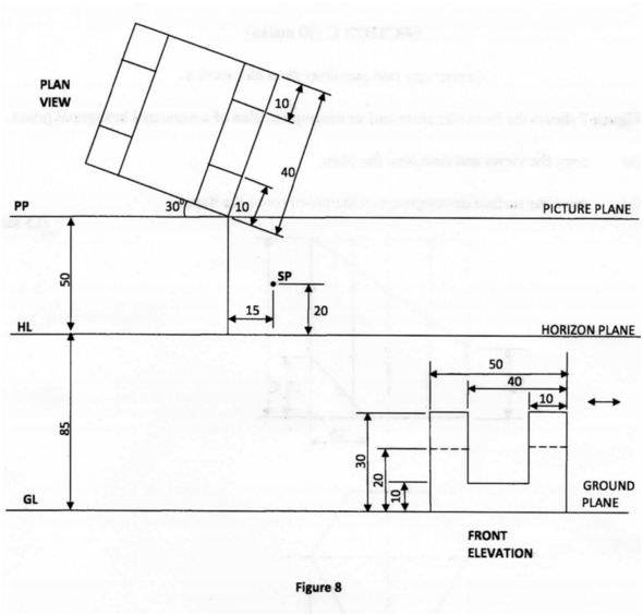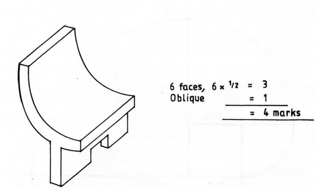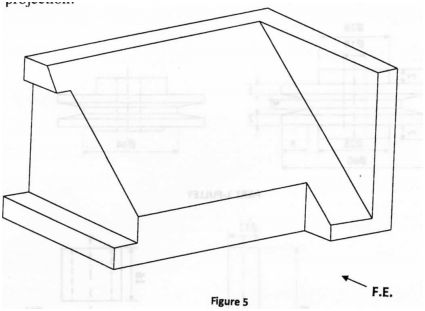 9. Figure 4 shows a block drawn in first angle projection. Sketch the block in oblique taking