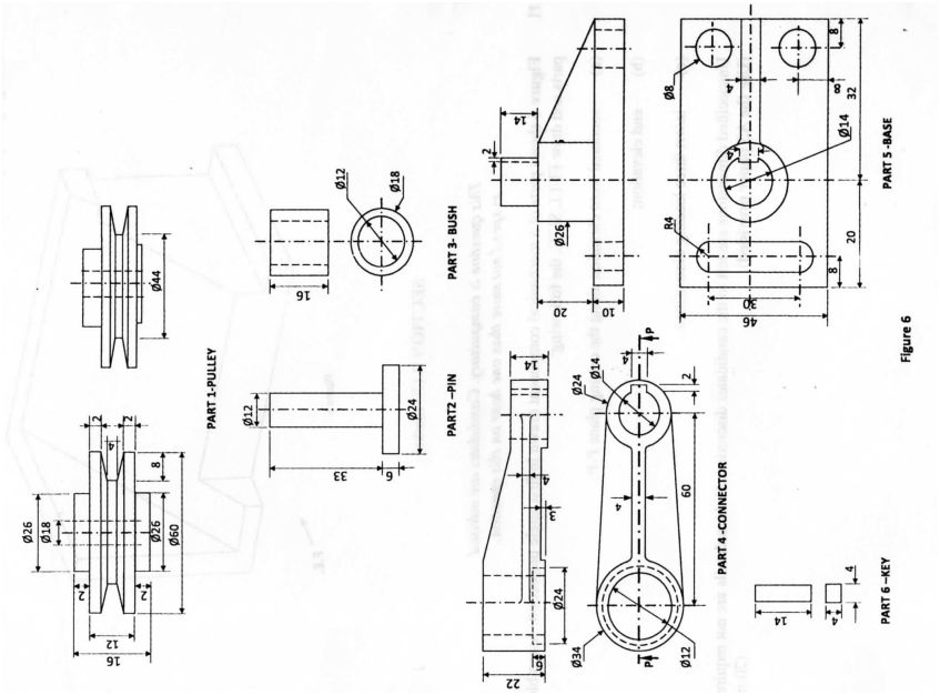 6. Figure 2 shows two views of two pans of a machine component drawn in first angle