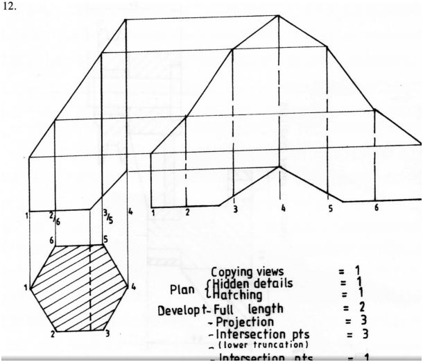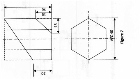 12 Figure 7 shows the front elevation and an incomplete plan of a truncated hexagonal prism.