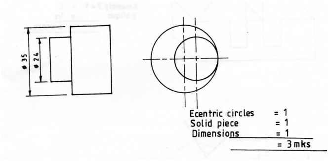 b) Sketch to show how the diameters of eccentric circles on a solid piece can be