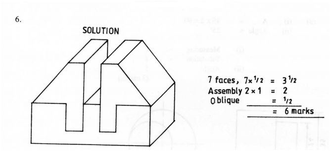 projections. Sketch the assembled parts in oblique projection. (6 marks)