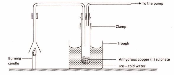 11 An experiment was set up to investigate the products of a burning candle as shown in the diagram below.