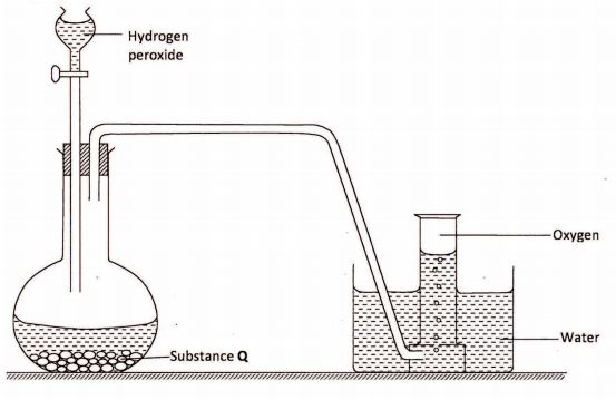 12 The diagram below is a set-up for the laboratory preparation of oxygen gas.