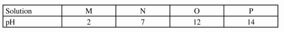 13 The table below shows the pH values of solutions.