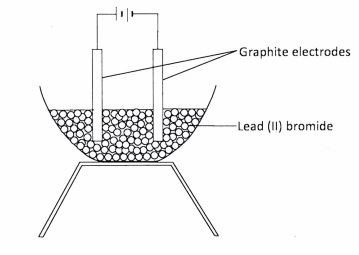 15 A student set up an experiment to investigate the effect of passing an electric current through lead (ll) bromide using graphite electrodes as shown below.