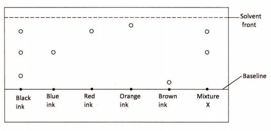 (b) Which of the inks is least soluble? (1 mark)