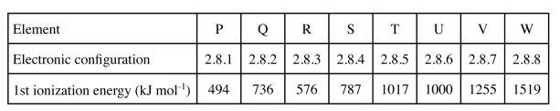 (b) Study the following table and use it to answer the questions that follow. The letters do not represent the actual symbols of the elements.