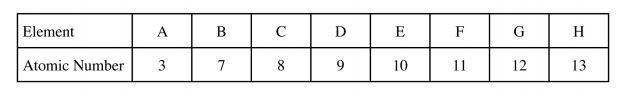 (i) R ............................................ (ii) U ................................................. (1 mark) 20 The table below shows the atomic numbers of elements of the periodic table represented by letters A to H. The letters are not the actual symbols of the elements.