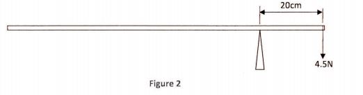 29 Figure 2 shows a uniform metre rule pivoted at the 20 cm mark and balanced by a weight of 4.5 N.