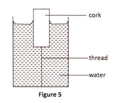 34 Figure 5 shows a cork floating in water and held in position by a thin thread attached to the bottom of the container.