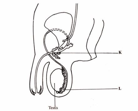 (ii) State the role of the hormone produced by the testis. (1 mark)