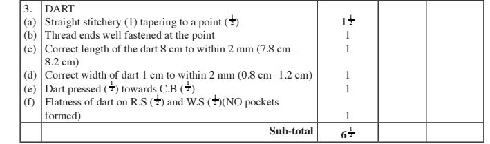 (b) Making of the dart at the back skirt. (6% marks)