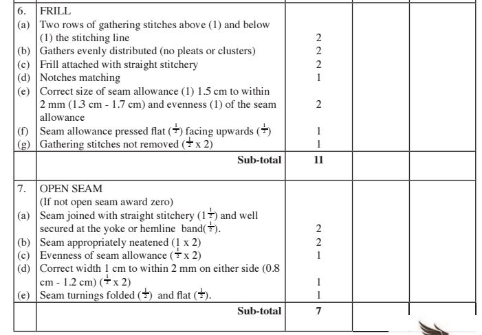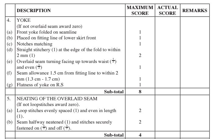 (e) Making of the skirt side seam from the yoke to the hemline using an open seam. (7 marks)