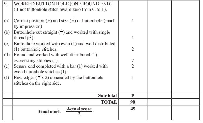(g) Making of the worked buttonhole. (12 marks)