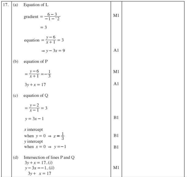 (b) Find the equation of P in the form ax + by = c, where a, b and c are constants. (2 marks)