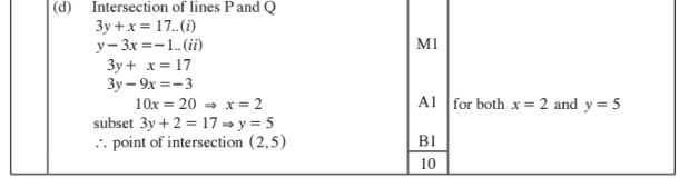 (d) Find the point of intersection of lines P and Q. (3 marks)