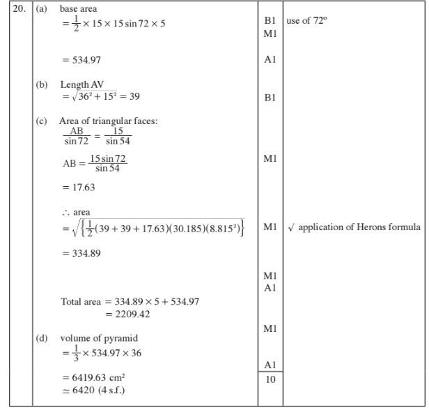 (d) the volume of the pyramid correct to 4 significant figures. (2 marks)