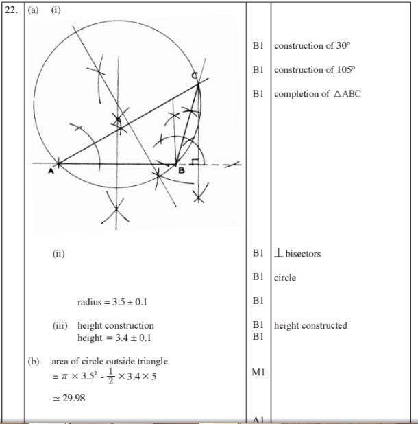 (i) triangle ABC in Which AB = 5cm, LBAC = 30° and LABC = 105°; (3 marks)