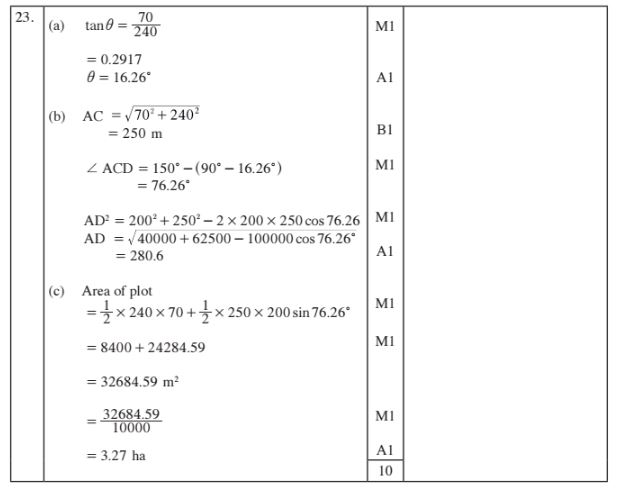 (c) the area of the piece of land, in hectares, correct to 2 decimal places. (4 marks)