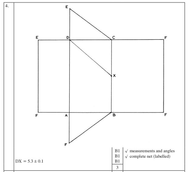 4 The figure below represents a triangular prism ABCDEF. X is a point on BC.