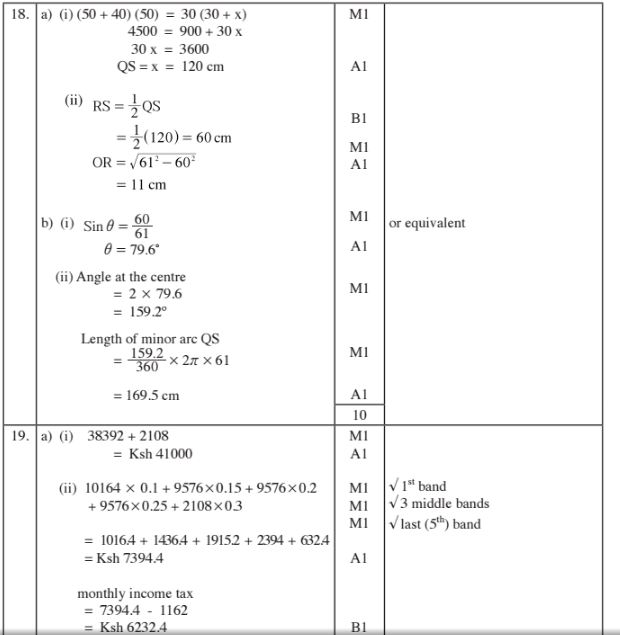 Kcse 2021 Mathematics Paper 2 Marking Scheme