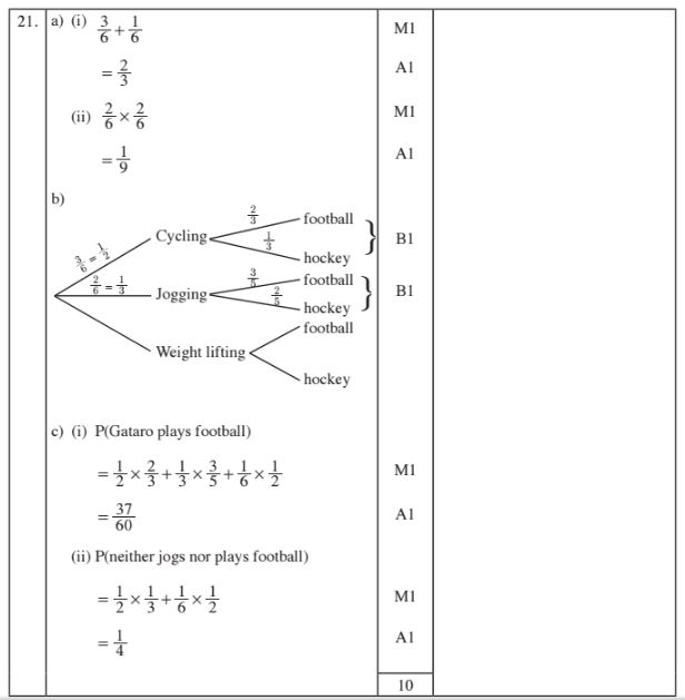 Kcse 2021 Mathematics Paper 1 Marking Scheme