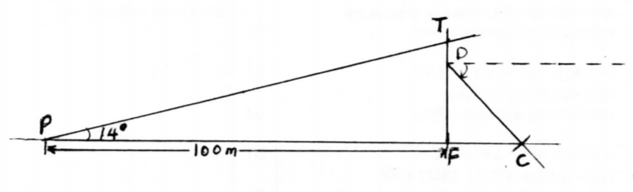 20. The angle of elevation of the top T, of a vertical mast from a point P, 100 m away from the foot F, o(the mast is 14°.