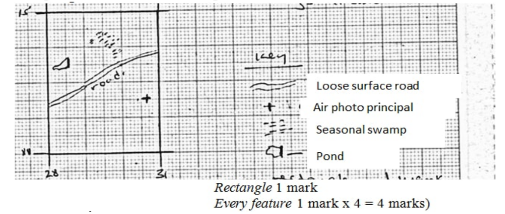 (a) Using a scale of l cm to represent 10 m, make a scale drawing to represent the above information. (3 marks)
