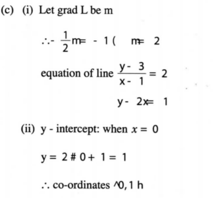 (c) Another line L is perpendicular to CD and passes through point (1, 3). Determine: