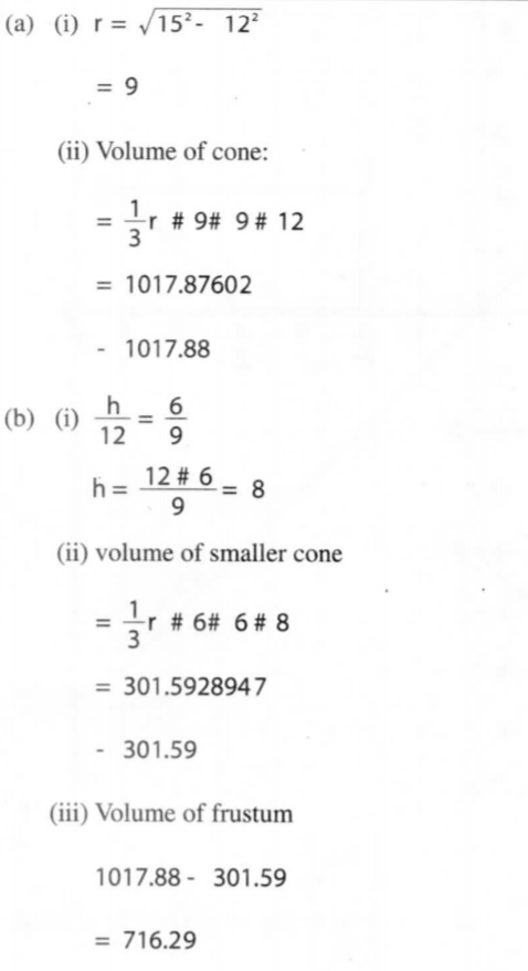 (b) A smaller cone of radius 6 cm is cut off’ from the com: alx» c to leave a i?ustum. Calculate: