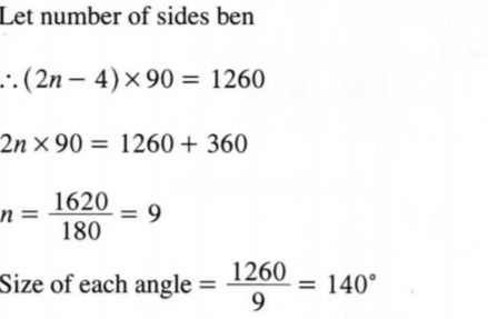 14. The sum of the interior angles of a regular polygon is 1260°. Find the size of each interior angle. (3 marks)