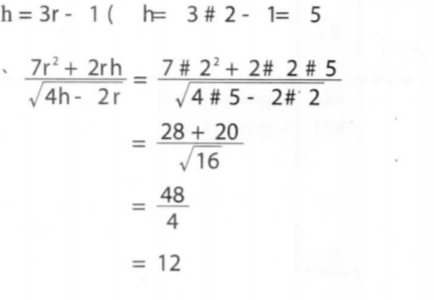 5. Given that r — 2 and h = 3r — 1, evaluate 7r2 + 2rh/√ 4h - 2r (3 marks)
