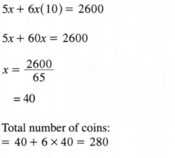 9.A box contains Cve shillings coins and ten shillings coins. The number of ten shillings coins are 6 times as many as the five shillings coins.