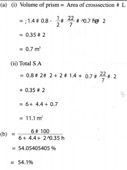 17. The figum below represents a solid prism with a semi-circular groove. The dimensions are as shown.