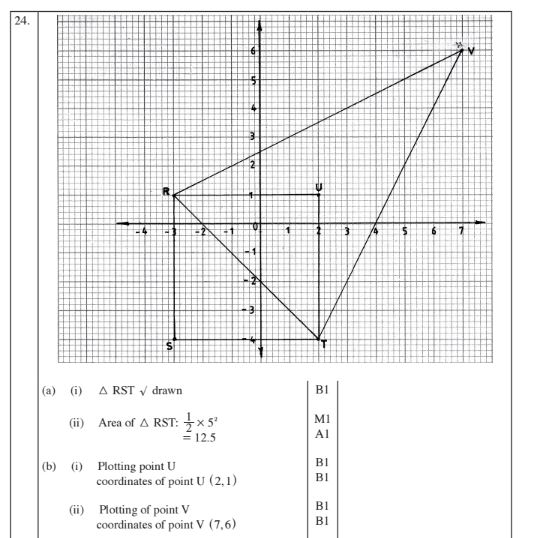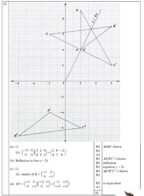 15. The vertices of a triangle are P(-3,1), Q(1,3) and R(4,2). The vertices of its image under an enlargement are P'( —7,4), Q'(1,8) and R'(7,6).