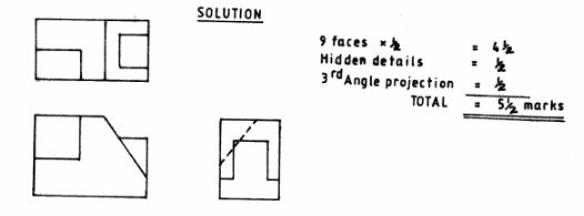 Sketch in third angle projection the three orthographic views of the block. ( 5 1/2 marks)