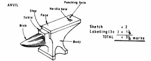 13 (a) Sketch an anvil and label three parts. (3 marks)