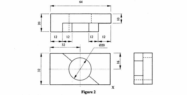 11 Figure 2 shows orthographic views of a machined block drawn in third angle projection.