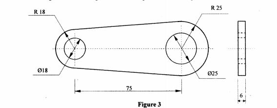 12 (a) Figure 3 shows a link to be made of 6 mm thick mild steel. Outline the procedure of making the link naming all the tools required in each step. (6 marks)