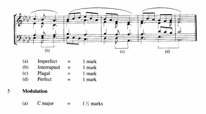 Cadences (1 mark each for two).2 marks