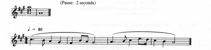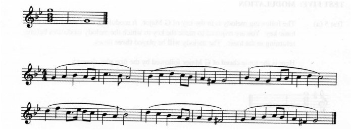 Test 5 (a) The following melody is in the key of G Major. It modulates once away from the tonic key. You are required to name the key to which the melody modulates before returning to the tonic. The melody will be played three times.