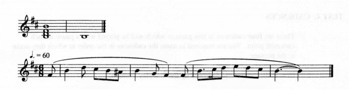 There are four cadences in this passage which will be played with a pause at each cadential point. You are required to name the cadences in the order in which they occur in the passage.