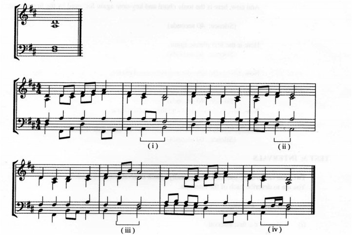 (ii) Discord: Combination of sounds not satisfactory or finished in itself requiring to be followed by a resolution. l mark