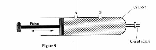 14 Figure 9 shows a syringe full of water. It has two identical holes A and B drilled along it s cylinder. The cylinder nozzle is closed.