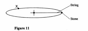 16 Figure 11 shows a stone attached to the end of a string with a uniform speed of 2m/s When the stone reaches point X on the circle, the string breaks.