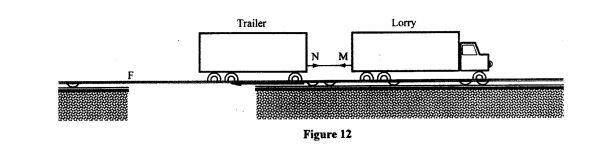 (b) Figure 12 shows a lorry towing a trailer using a rope.