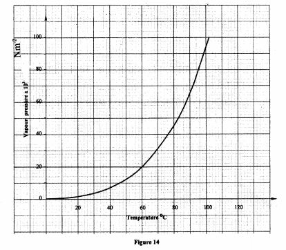 (b) Figure 14 shows a graph of vapour pressure against the temperature of water vapour, in a laboratory where a mercury barometer indicates a height of 61.8 cm.