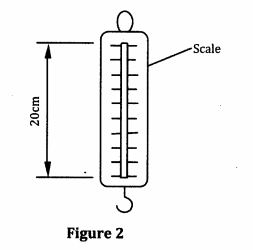 3 Figure 2 shows a spring balance. It’s spring constant is l25Nm". The scale spreads over